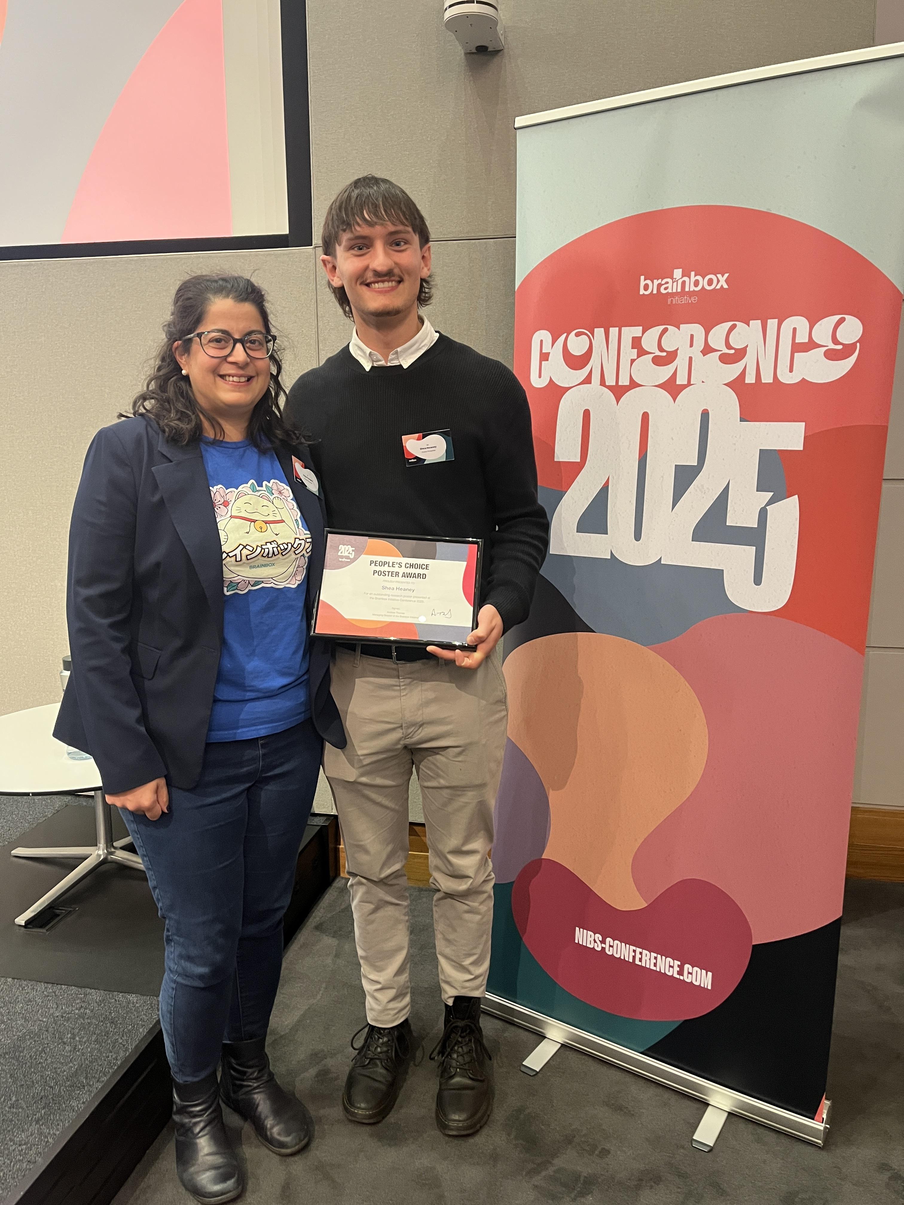 Shea, an MBiomedsci in Neuroscience student supervised by Dr. Polytimi Frangou and Prof. Charlotte Stagg at the Unit, won the People's Choice Poster Award for his poster entitled "Effects of Donepezil on attentional processing and TMS measures of GABAergic and Cholinergic signalling".